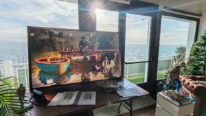Dès l’ouverture des portes, les visiteurs ont découvert une atmosphère totalement réinventée. Les œuvres de S.Kristol ont trouvé naturellement leur place dans cet écrin face à l’océan, créant un dialogue subtil entre création contemporaine et paysage maritime. Couleurs, matières et perspectives se sont mêlées pour offrir une nouvelle lecture des espaces.